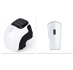 Smart knee massager with electric physiotherapy for knee pain relief. Features 3.7V rated voltage, DC5V 2A input, and 3000mAh battery. Comes with host, manual, and charging cable. Perfect for soothing sore knees effectively and comfortably.
